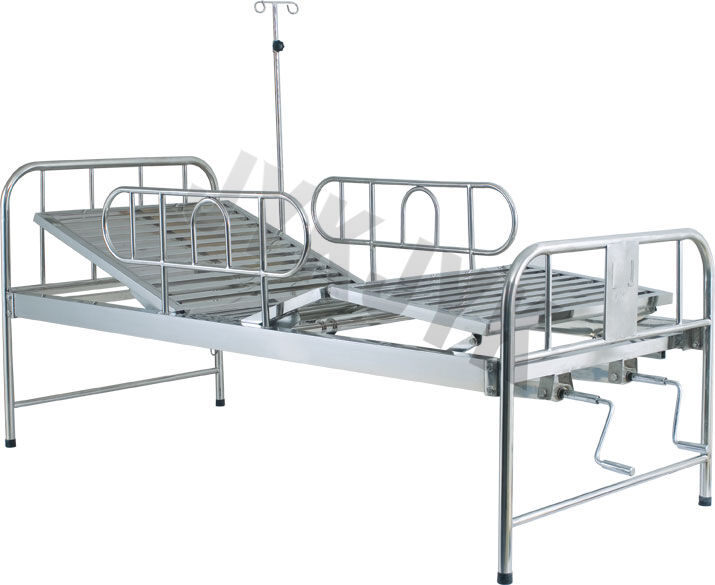 The JYK-B201S is a high-quality stainless steel hospital bed designed for medical facilities, featuring dual manual functions for backrest and knee-rest adjustment. Ideal for ICU and general medical ward use.